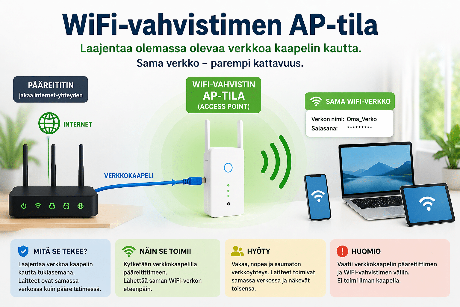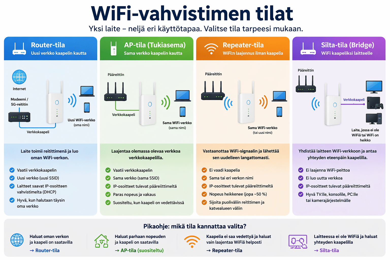 WiFi-vahvistimen tilat – mitä ne tarkoittavat ja mikä kannattaa valita?